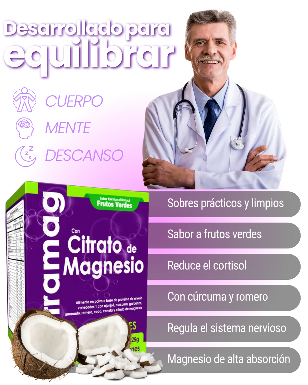 Citramag combina citrato de magnesio altamente absorbible con superalimentos funcionales que actúan sobre el sistema nervioso y el eje del estrés.